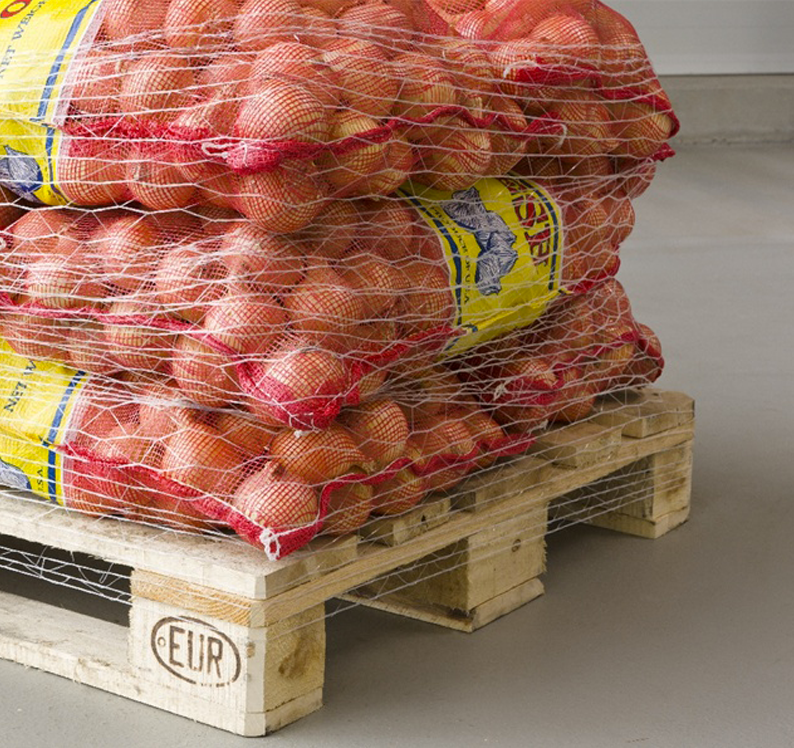 Malla de alta resistencia a la tracción, ideal para el paletizado de cajas y productos con formas irregulares, como sacos o material cerámico.